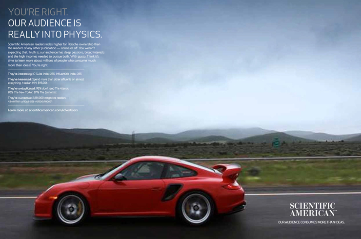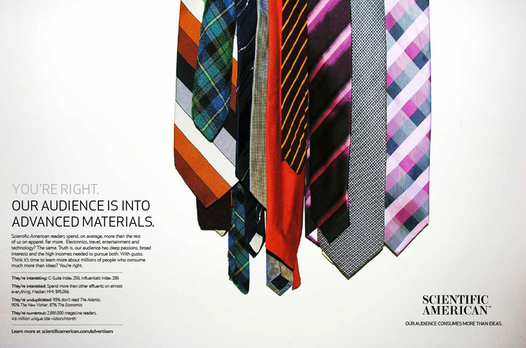 Advertisers had abandoned Scientific American, convinced its audience was nerds who lived only in their heads. In reality, the readership lived quite well, indexing at the high end for the consumption of just about everything — along with ideas. Exactly the people you want to see your ad.