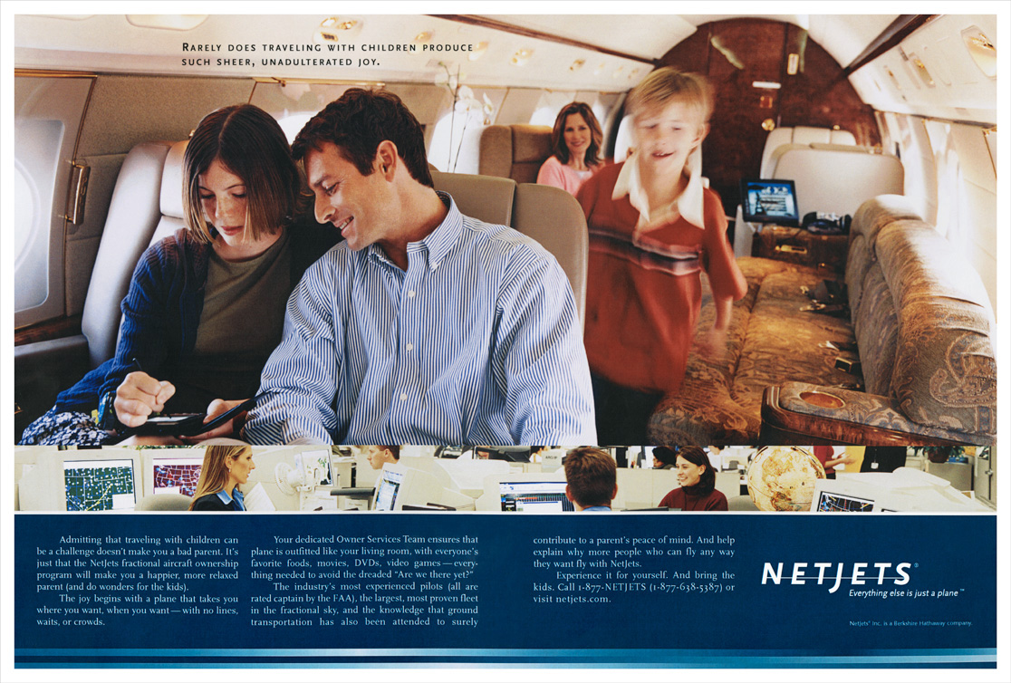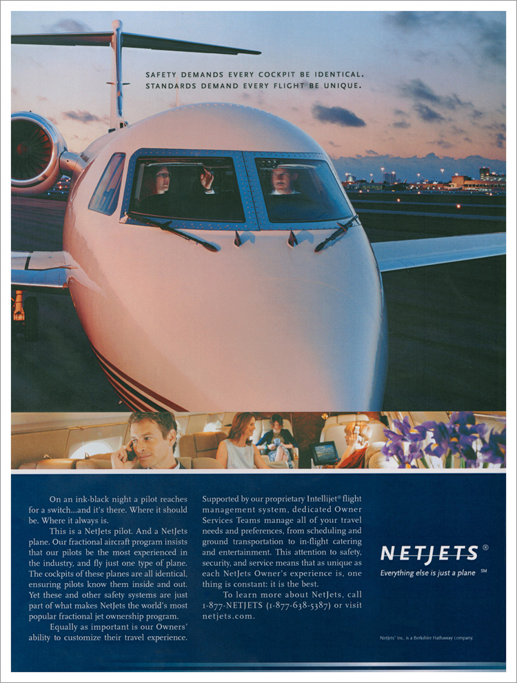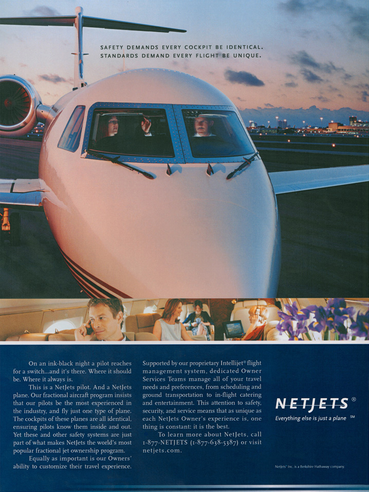 Private jets are sexy. Unfortunately, every fractional jet service’s planes are sexy. The answer? Sell the NetJets experience. An unbeatable combination of service, flight operations and customization. And position everybody else as just a plane.