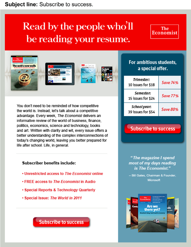 Print advertising for The Economist is considered some of our industry’s best. Targeted direct mail had to hold its own in such august company.